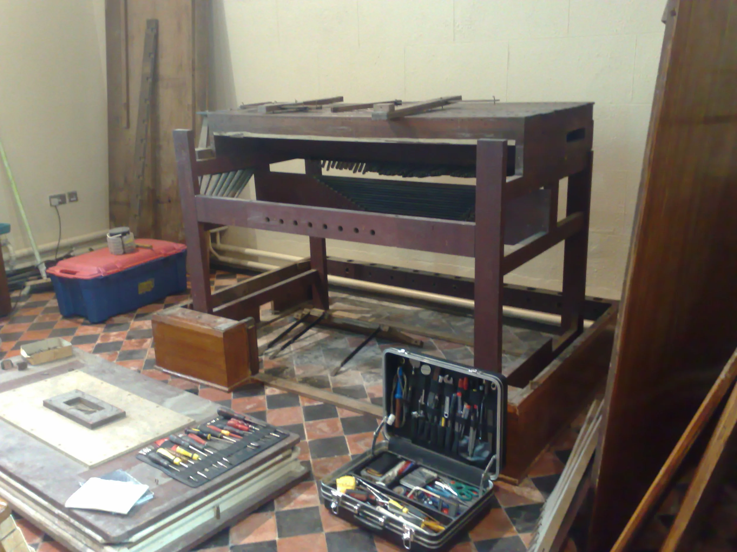 We are well known for saving organs. This quite often involves relocating them. A few photos documenting the move of this little Bevington organ from Mallow, Co. Cork to Pallas Grean, Co. Limerick. Here it is as seen in Mallow: