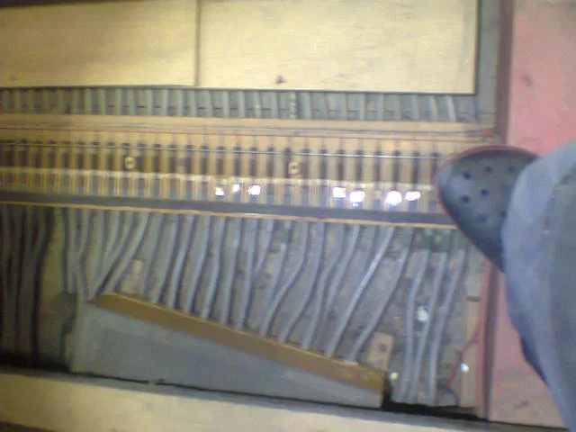Some of the bothers we are dealing with apropos the multiple dumb notes - broken springs on the feeds to the front pipes of both Great Open Diapasons.....silly design really, bending spring steel.....they we always going to be prone to failures: